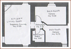 E’ composto da un’ampia cucina-soggiorno con camino, bagno con doccia, una camera con letto matrimoniale ed una camera con un letto ad una piazza e mezzo.